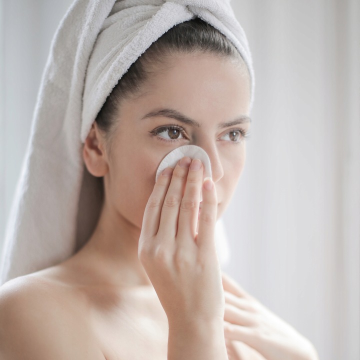 Apply the makeup remover onto a cotton pad. Wash off makeup.