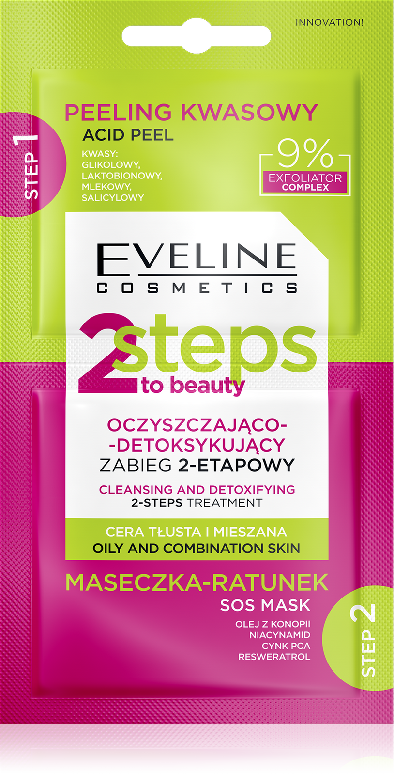 Eveline 2 Steps To Beauty Cleansing and Detoxifying 2-Step Treatment for Oily and Combination Skin 2x4ml