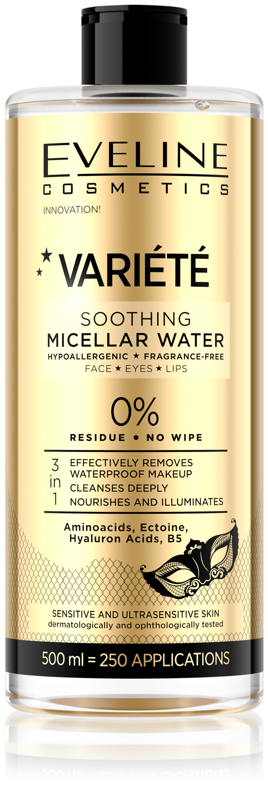 - Vegan, soothing micellar fluid that effectively removes even waterproof make-up.