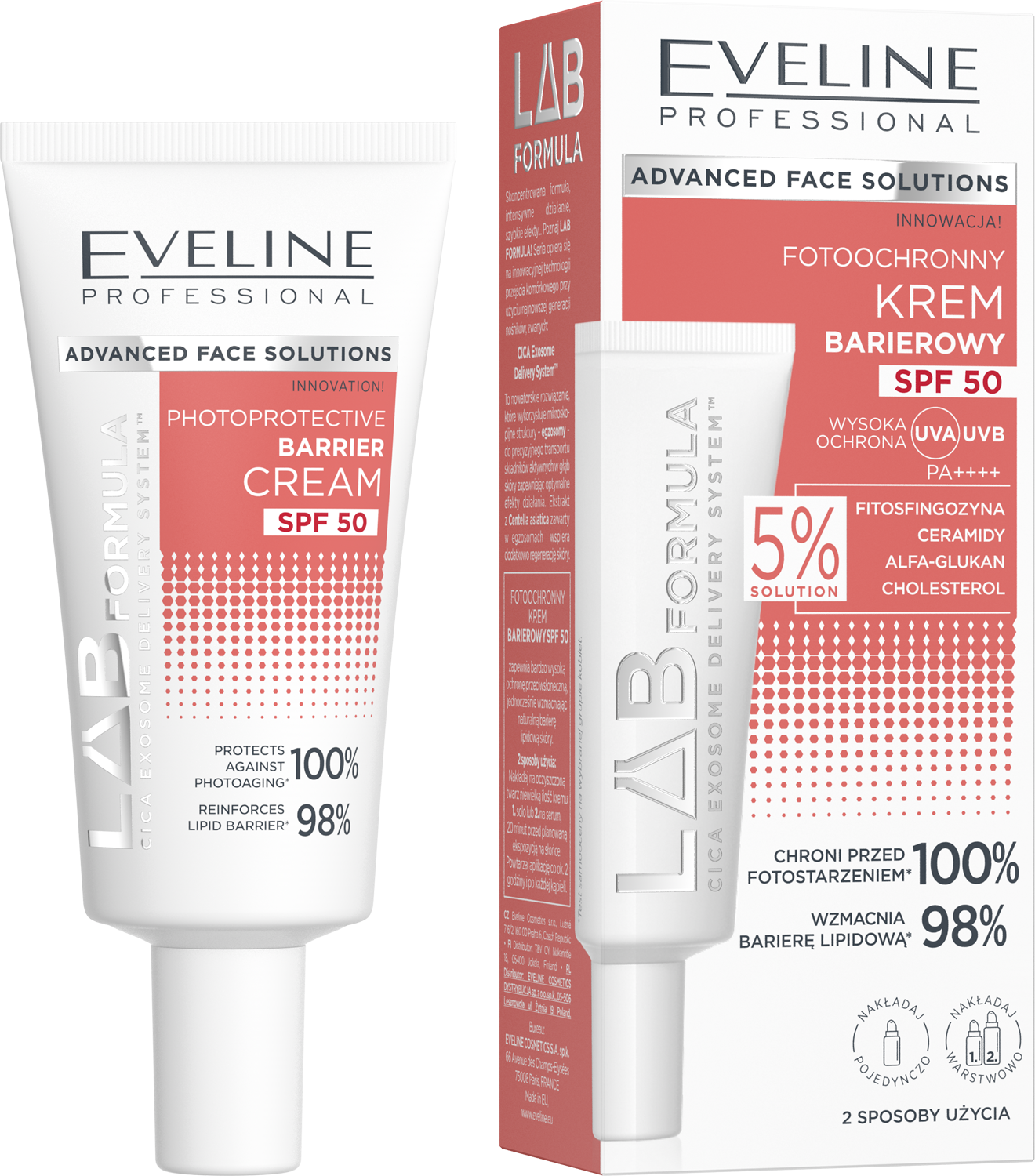 High SPF50 protection of the light barrier cream effectively protects the skin from UV radiation, helps prevent photoaging, discoloration and structural damage. Additionally, the presence of CICA Exosome Delivery System™ technology, active ingredients are precisely transported deep into the skin, which increases their effectiveness and supports regenerative processes.