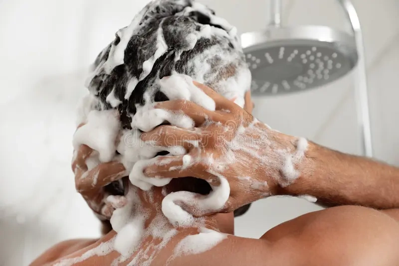 Apply an appropriate amount of shampoo to wet hair. Lather it up and then rinse thoroughly with water.