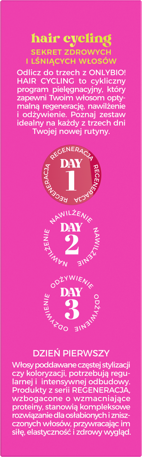 - Products from the Regeneration range, enriched with strengthening proteins, constitute a comprehensive solution for weakened and damaged hair, restoring their strength, elasticity and healthy appearance.