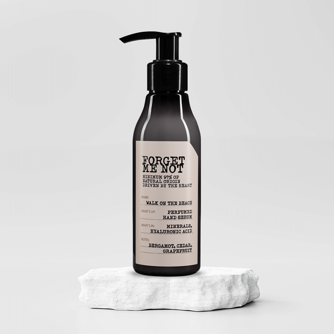 Walk on the Beach fresh fragrance notes enclosed in a hand serum package. Perfumed serum with nourishing properties has an aromatherapeutic effect and improves mood. Vegan recipe provides effective nourishing effect.