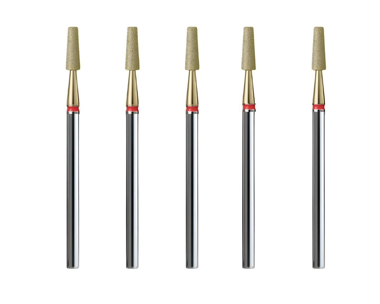 - A set of 5 IQ Nails diamond drills with a delicate truncated cone shape and a red stripe provide exceptional control during surgery.