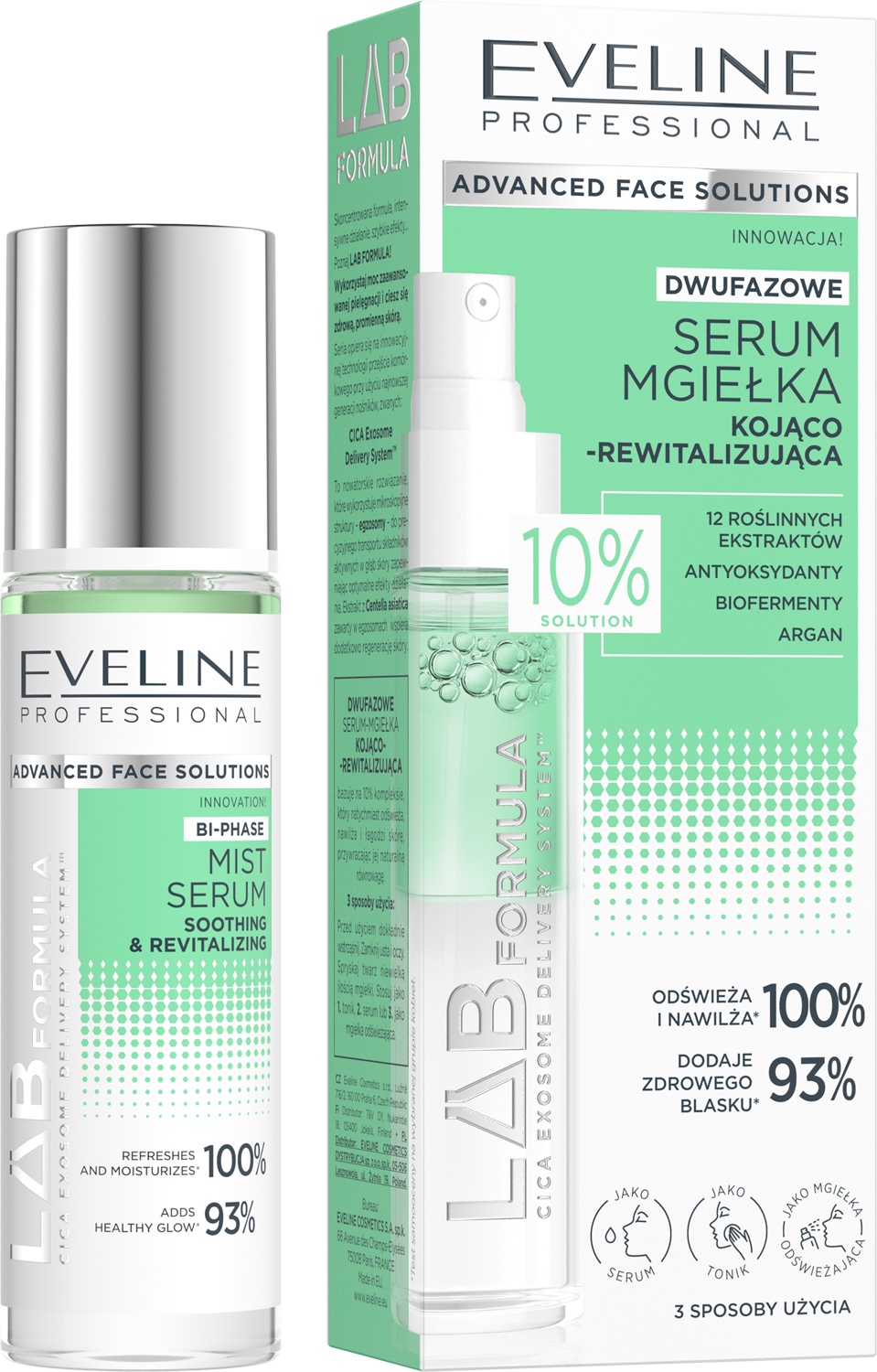 - Lab Formula is a two-phase serum-mist that instantly restores skin's freshness, hydration, and healthy glow. It acts as an instant energy boost – soothing, nourishing, and supporting natural regeneration from the very first application.
