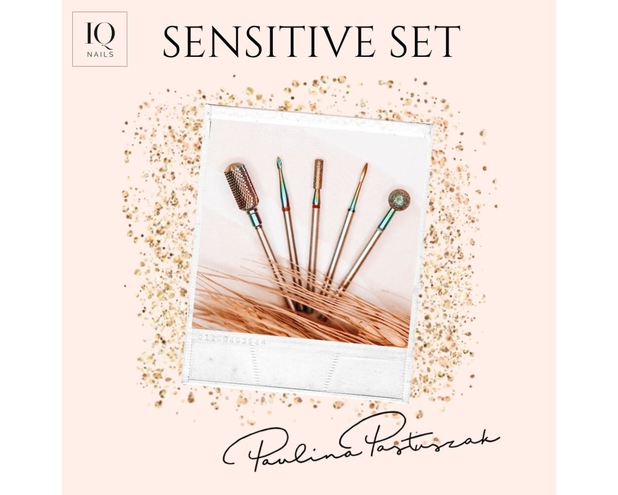 Sensitive Sst manicure set created in cooperation with Paulina Pastuszak, containing 5 IQ Nails tips: a carbide cutter for removing semi-permanent nail polish, gel and acrylic and four cuticle cutters. The five tips are covered with a layer of Nano Chameleon coating, which minimizes the effect of overheating during use, protects the cutter teeth and extends its service life.