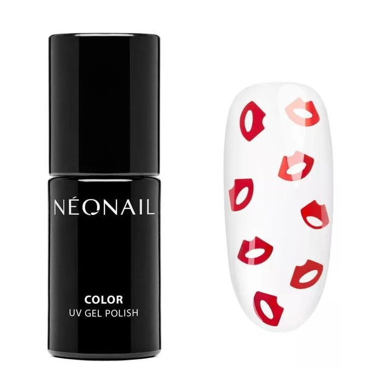 Transparent hybrid varnish with decorations in the form of red lips, embedded in the middle.