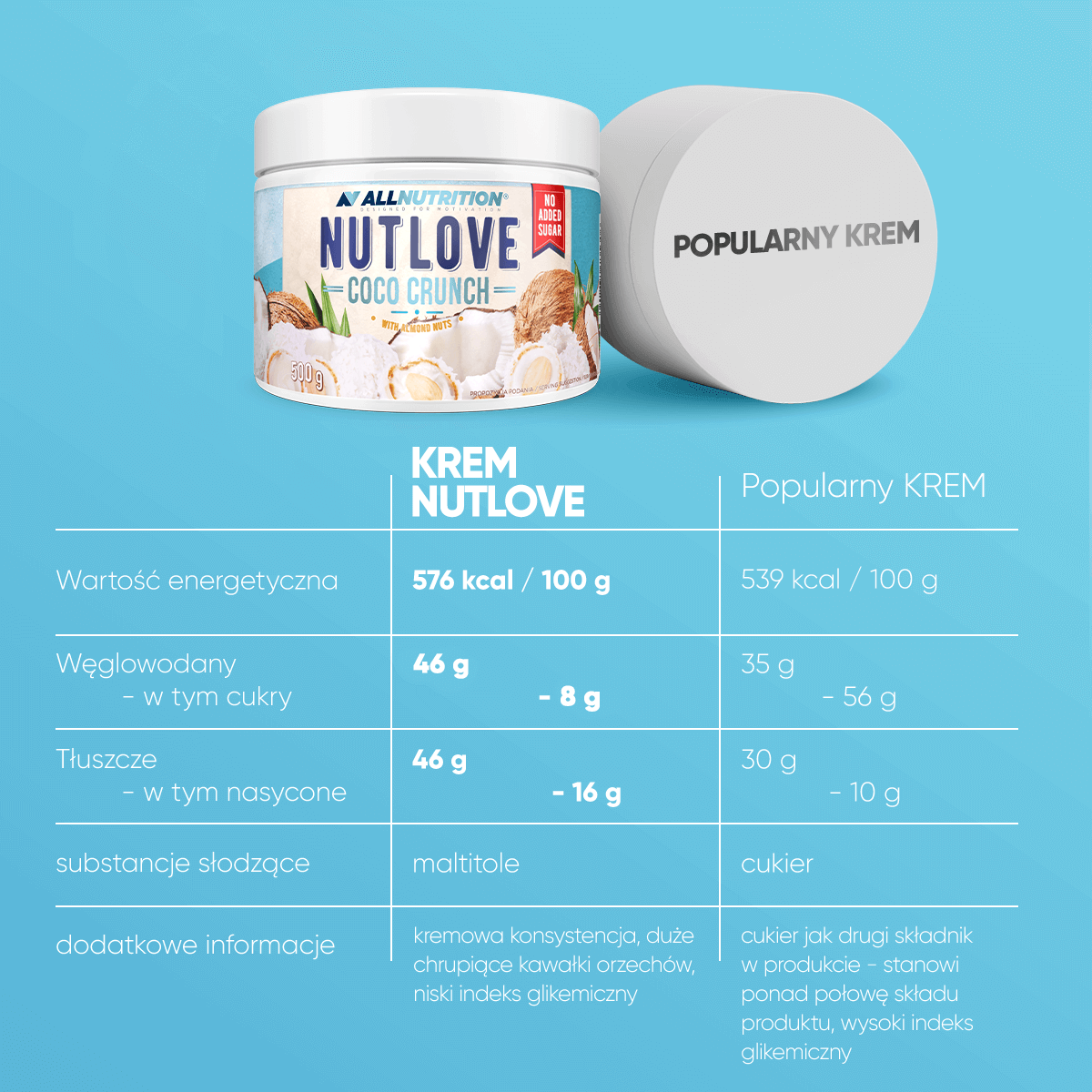 Discover a real coconut feast with crunchy almonds. This exceptionally coconut cream is sweetened with maltitol, a healthier and less caloric alternative to sugar. It tastes perfect as an addition to omelets, oatmeal and on sandwiches. Use it for all desserts and enjoy the possibility of preparing healthy dishes.