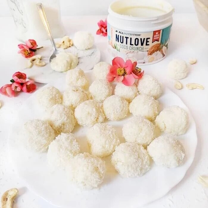 - A creamy white chocolate spread with almonds and coconut flakes and no added sugar. Dreamy, creamy, crunchy almond nuttiness, with a tropical twist. It's just like eating Raffaello on toast!