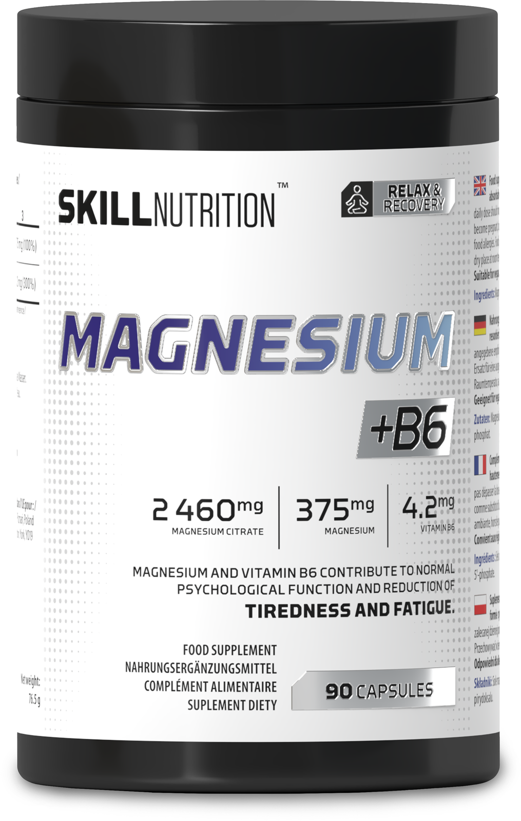 - Skill Nutrition Magnesium + B6 is a dietary supplement containing a combination of magnesium citrate and vitamin B6 in a convenient 90-capsule package. It is designed to support the proper functioning of the nervous system and reduce feelings of fatigue.