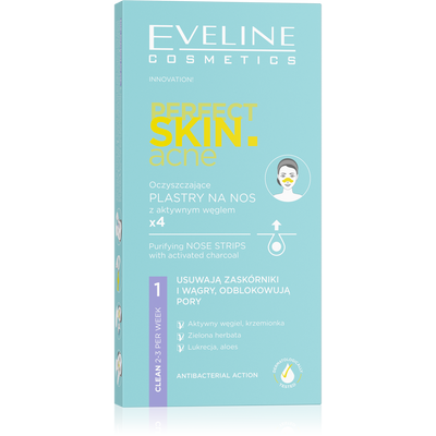 Eveline Perfect Skin Acne Oczyszczające Plastry na Nos z Aktywnym Węglem dla Skóry Problematycznej 4 Sztuki