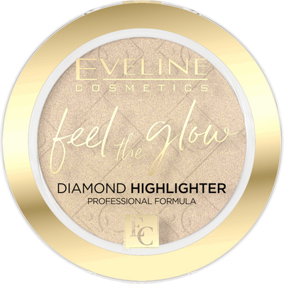 Eveline Feel the Glow Wegański Aksamitny Rozświetlacz do Twarzy w Kamieniu 01 Sparkle 5g