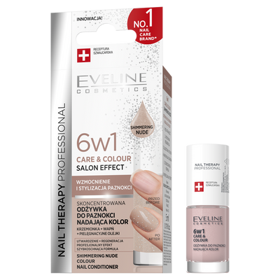 Eveline Nail Therapy Professional Care & Colour 6w1 Skoncentrowana Odżywka do Paznokci Nadająca Kolor Shimmering Nude 5ml