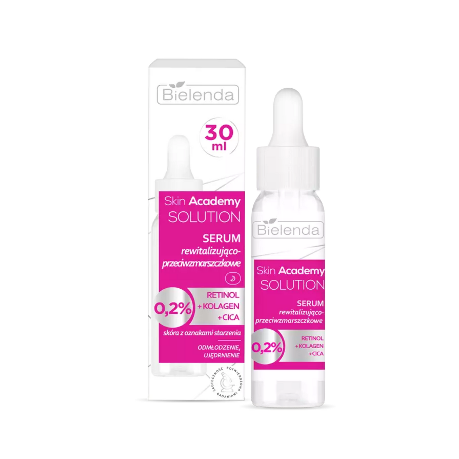 Bielenda Skin Academy Solution Serum Rewitalizująco- Przeciwzmarszczkowe 0.2 Retinol Collagen i Cica dla Skóry z Pierwszymi Oznakami Starzenia 30ml