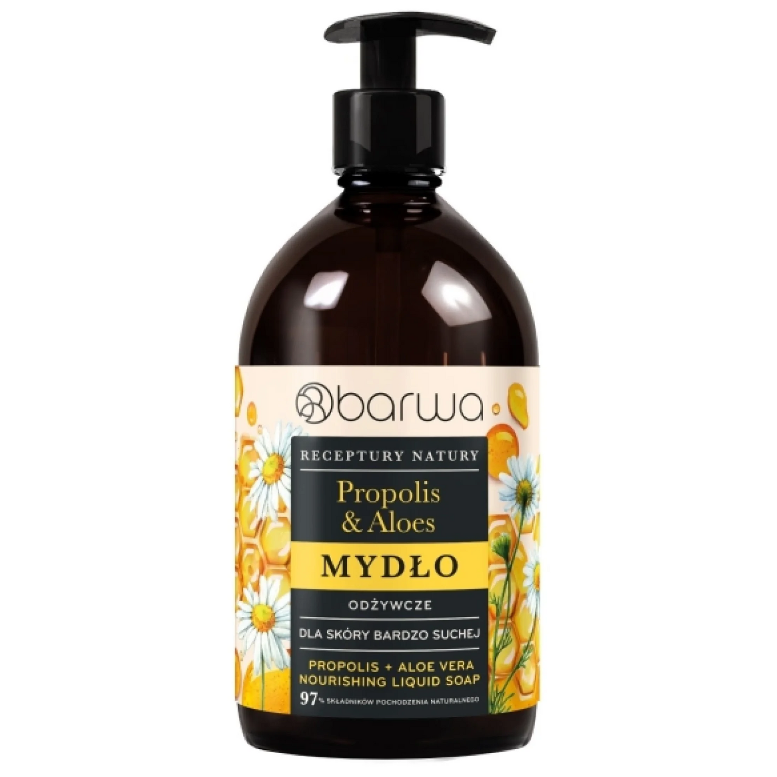 - Odżywcze mydło w płynie z propolisem i aloesem opracowane do codziennej pielęgnacji skóry bardzo suchej. 97% składników pochodzenia naturalnego.