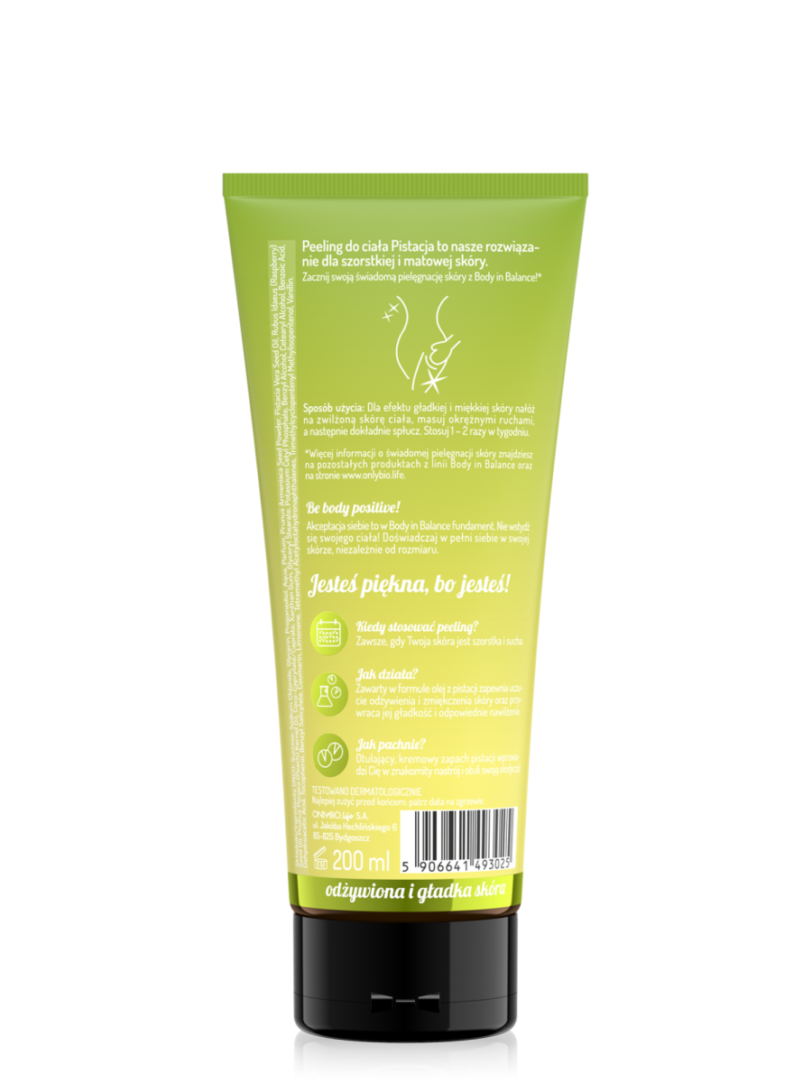 - OnlyBio Body in Balance Peeling do ciała Pistacja – gładka, odżywiona i pachnąca skóra już po pierwszym użyciu!