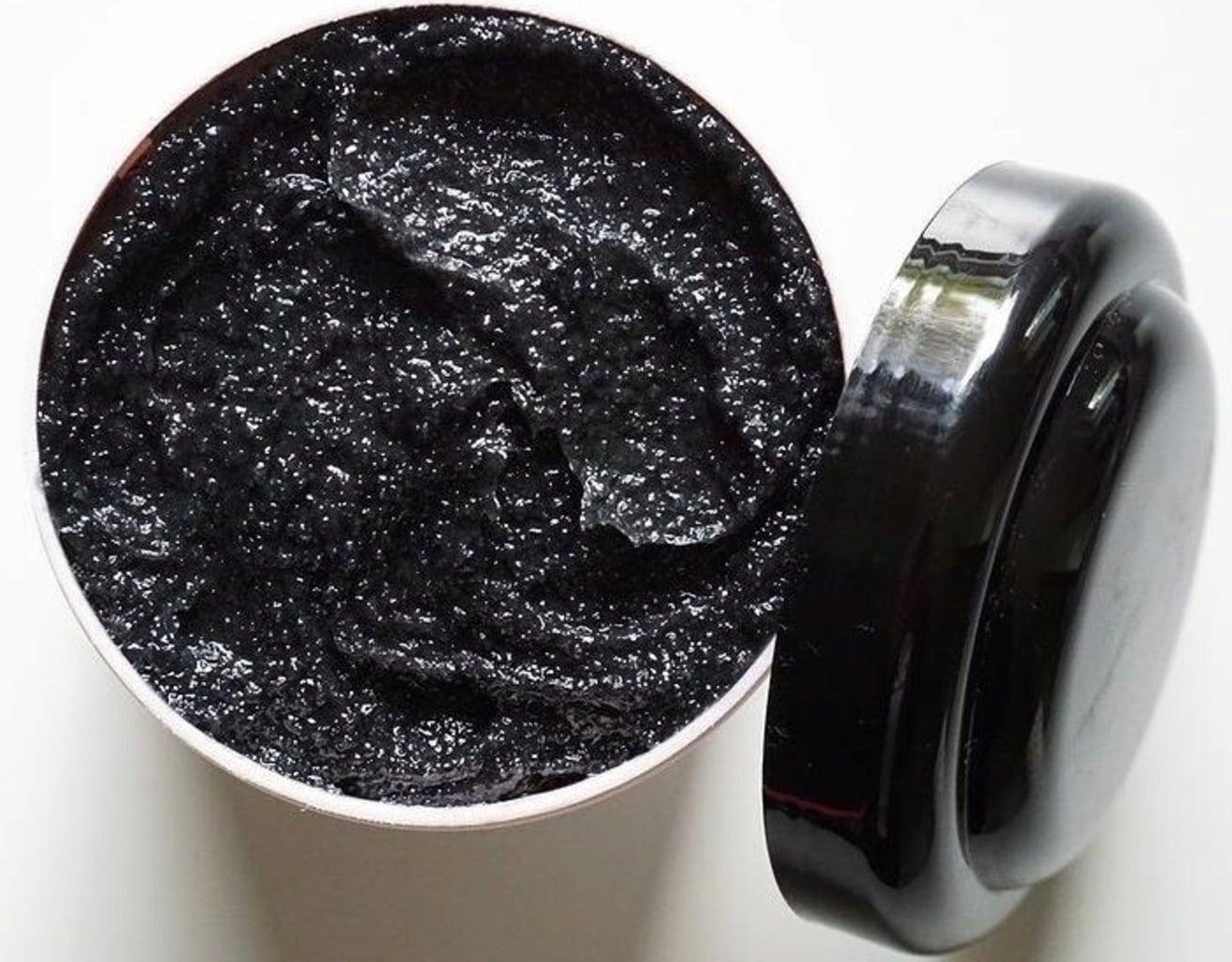 Czarny cukrowy peeling do ciała usuwa zanieczyszczenia i sebum idealny dla młodej, nastoletniej skóry z niedoskonałościami.