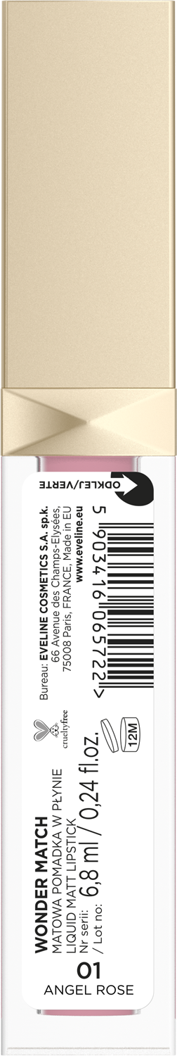 Receptura pomadki Wonder Match łączy w sobie intensywne pigmenty dla matowego efektu, który utrzymuje się przez wiele godzin bez konieczności poprawek. Szybko zastygająca formuła sprawia, że jest to idealny produkt gwarantujący komfort noszenia zupełnie bez uczucia ciężkości i lepkości. Wodoodporna formuła long-lasting sprawia, że pomadka odporna jest na ścieranie, odbijanie, a nawet…pocałunki!