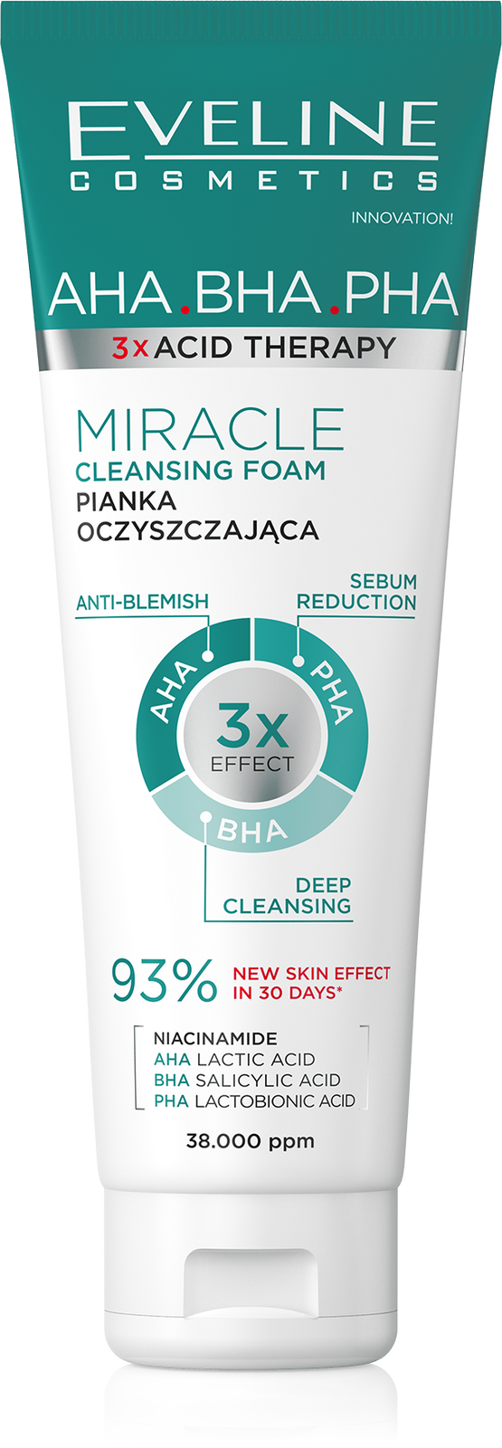 Dzięki synergicznie działającym kwasom pianka głęboko oczyszcza z delikatnie złuszcza. Dodatkowo pomaga regulować wydzielanie sebum, odblokowuje pory i wygładza naskórek, dzięki czemu cera wygląda zdrowo i promiennie.