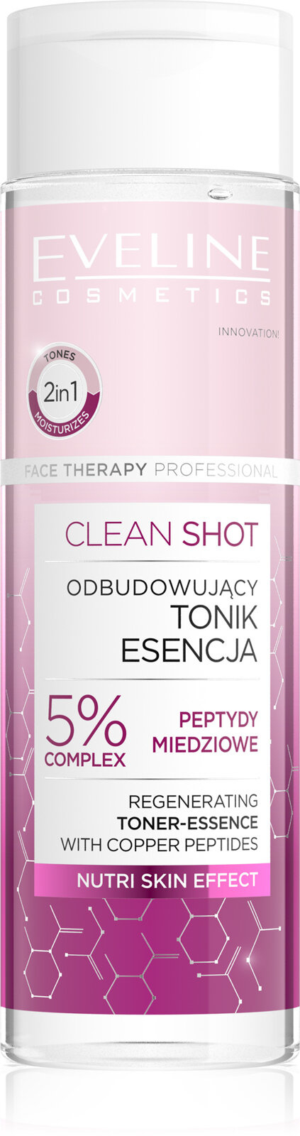 Eveline Clean Shot Odbudowujący Tonik-Esencja 5% Kompleks Peptydy Miedziowe dla każdego Rodzaju Skóry 200ml