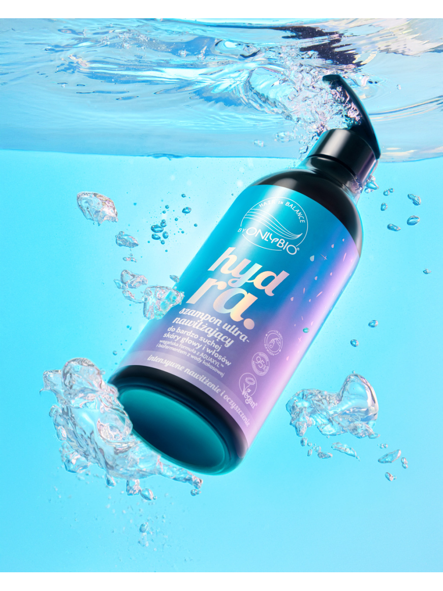 - OnlyBio Hair in Balance Hydra Szampon Ultranawilżający do Bardzo Suchej Skóry Głowy i Włosów – poczuj nawilżenie pełne lekkości i świeżości przy każdym myciu!