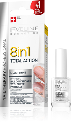 Eveline Nail Therapy Total Action Skoncentrowana Odżywka do Paznokci z Drobinkami Srebra 8w1 Silver Shine 12ml
